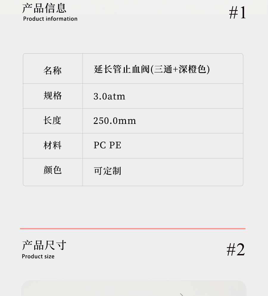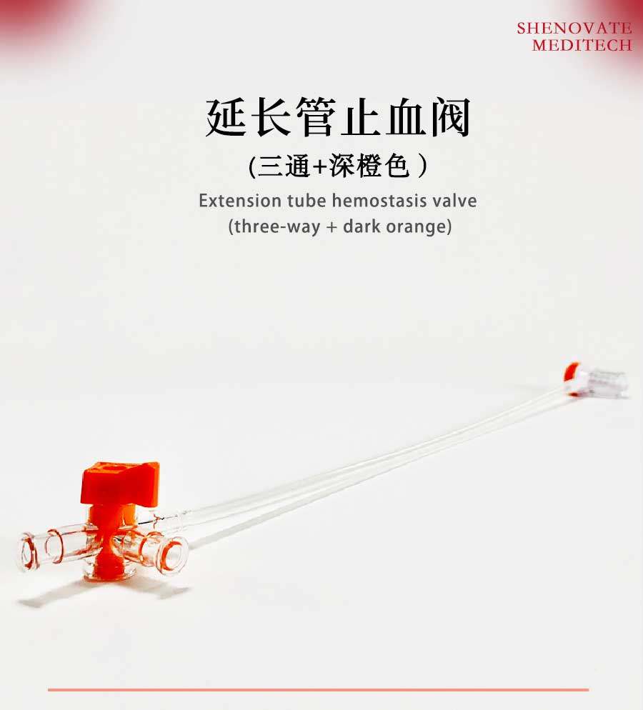延长管止血阀(三通+深橙色)Extension tube hemostasis valve (three-way + dark orange)