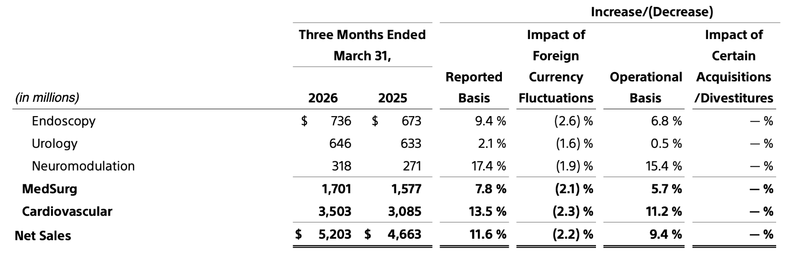 当地时间4月22日,波士顿科学公布最新财报,2026年一季度实现营收52.03亿美元(折合人民币约355亿元),按报告数据计算同比增长了11.6%,按运营和有机数据计算同比增长了9.4%。归母净利润13.41亿美元,同比增长98.96%。分板块看,心血管部门销售额35.03亿美元,报告增长13.5%,运营和有机增长11.2%。