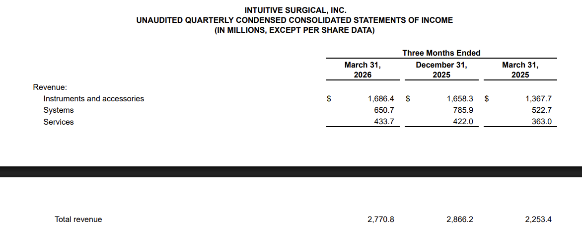 核心业绩亮点营收与利润强劲增长直觉外科的Q1答卷,用“惊艳”二字形容毫不为过。