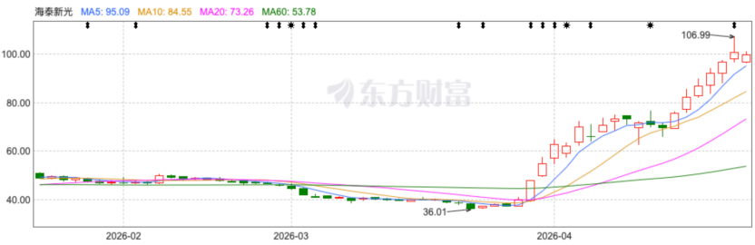 海泰新光正是其中之一,从2026年3月底至今,在短短的一个月时间内,其股价暴涨近3倍,这也从侧面反映出市场资金非常看好海泰新光的增长。
